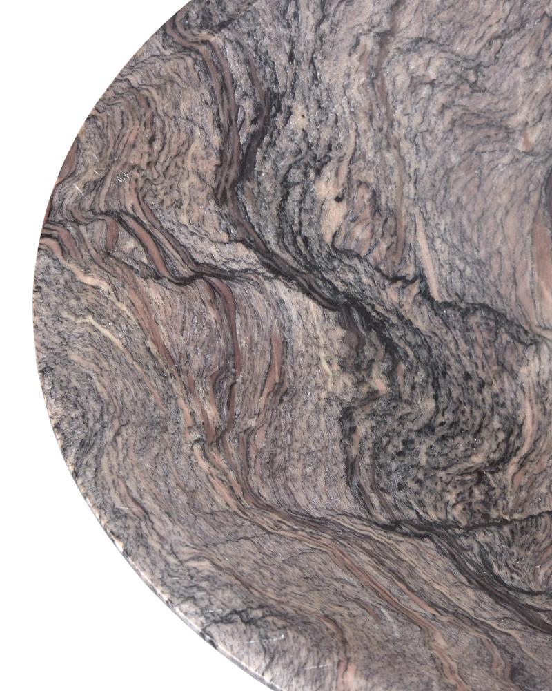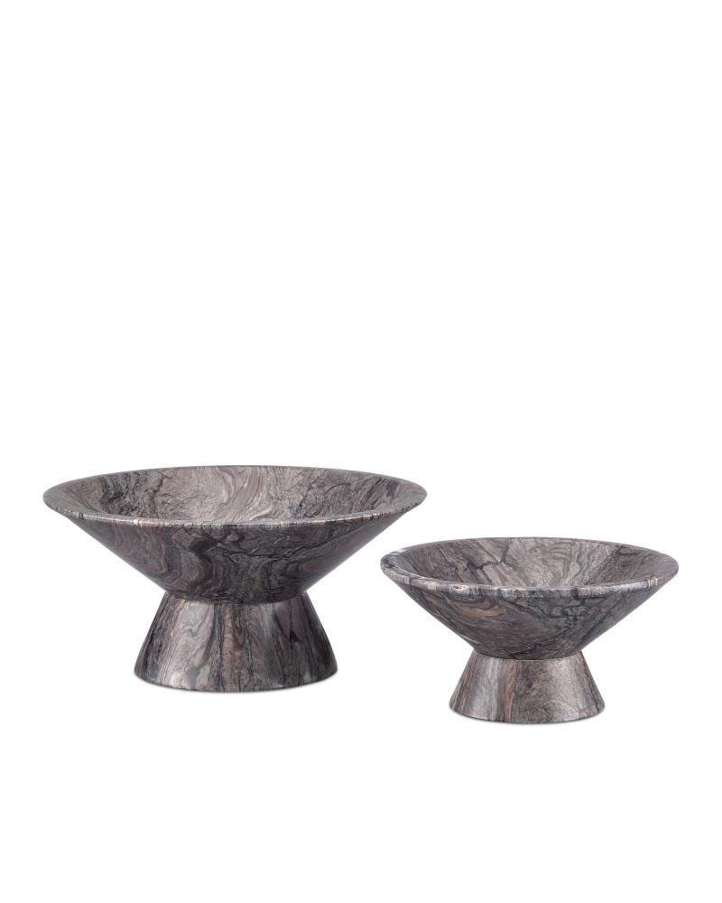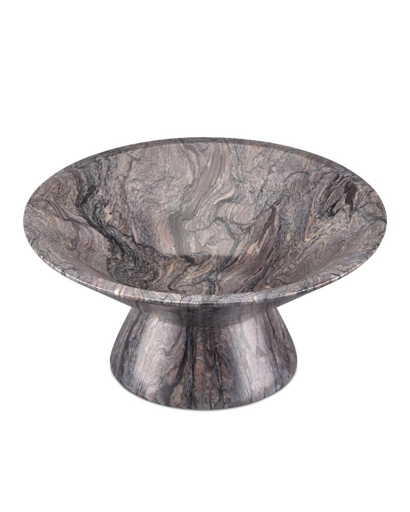 The Lubo Breccia Small Bowl is made of Breccia marble, which has a swirling personality as haunting as the milky way at night. The black footed bowl will be a chameleon in an interior, as it will be just as fitting for holding decorative objects in a main living space as it will be for displaying fruit on a kitchen island. The surfaces will vary from piece to piece.