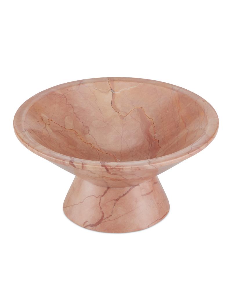The Lubo Rosa Large Bowl is made of Rosa Cappuccino marble, which has a swirling personality as glorious as a desert sky at sunset. The pink footed bowl will be a chameleon in an interior, as it will be just as fitting for holding decorative objects in a main living space as it will be for displaying fruit on a kitchen island. The surfaces will vary from piece to piece.