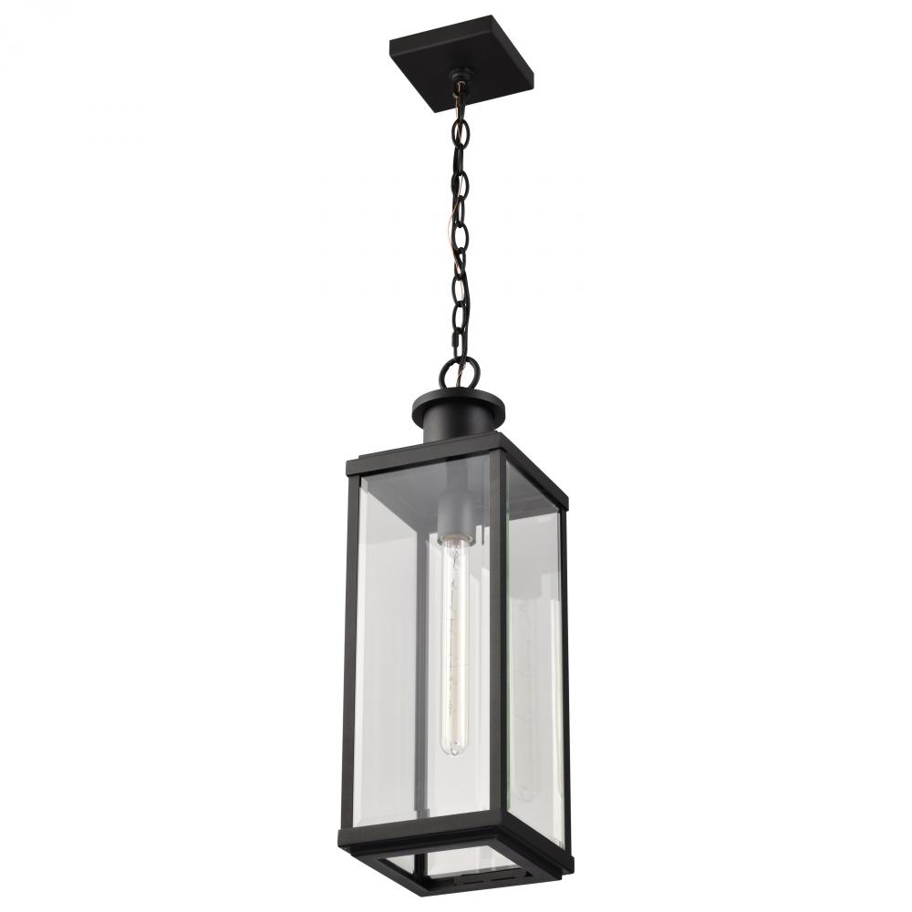 Luca; Hanging Pendant; Sand Black Finish; Clear Beveled Glass