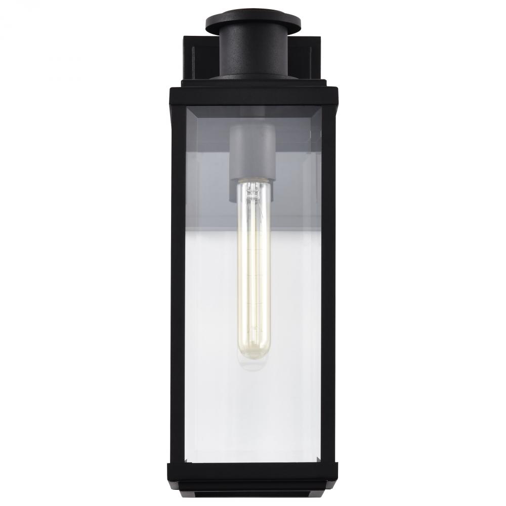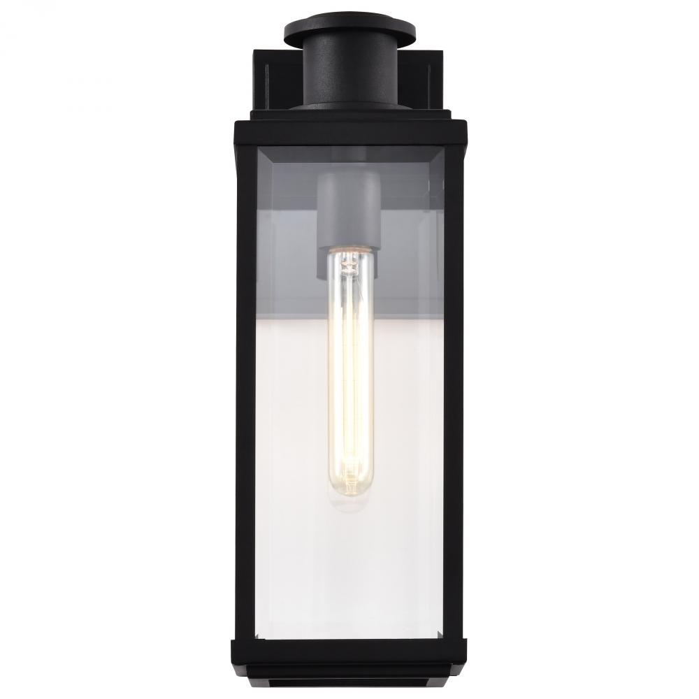 Luca; Medium Outdoor Lantern; Sand Black Finish; Clear Beveled Glass