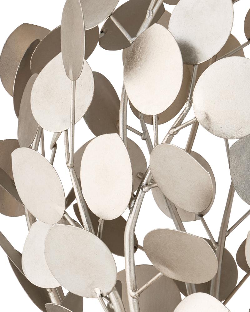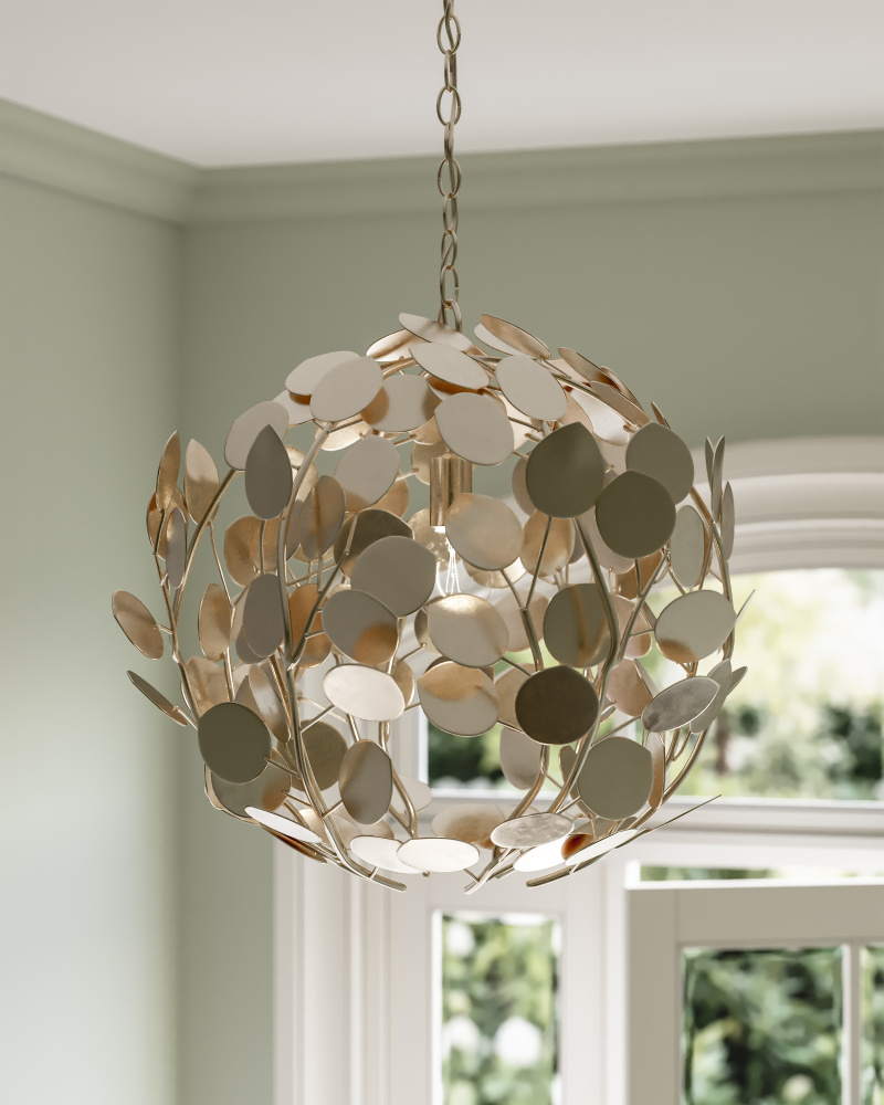 With a lyrical profile of fluttering discs that favor the leaves of its namesake plant, the Lunaria Orb Chandelier is made of wrought iron in a contemporary silver leaf finish. The light from the bulb that illuminates the flowing petals of metal reflect off the finish on this silver chandelier to increase the glow. The nature-inspired creation will add elemental style to a space. Adjustable from 27.25" to 95.25" with use of included chain/rod kit/cable. If your space calls for a longer drop, additional chain/rods/cable is available for purchase.
