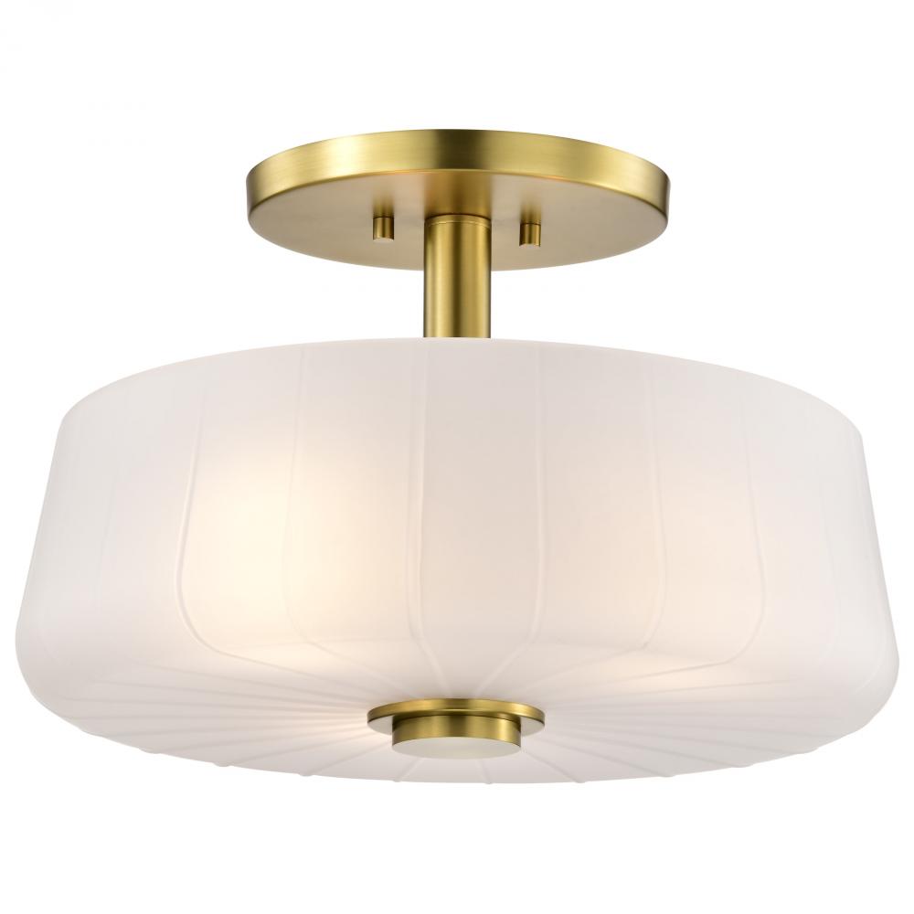 Lune; 3 Light Semi-Flush; Vintage Brass Finish; Etched White Glass