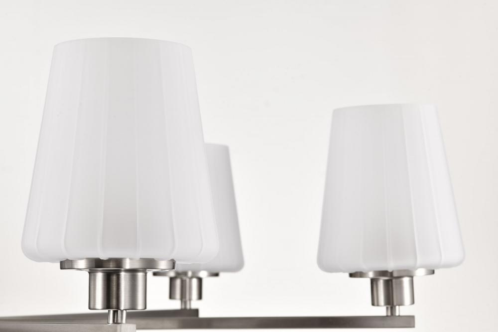 Lune; 6 Light Chandelier; Brushed Nickel Finish; Etched White Glass