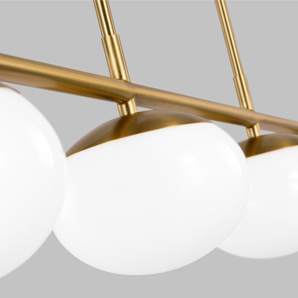 The Lune mid-century modern collection from Ellen DeGeneres is offered in two finishes including Aged Iron and Burnished Brass. The symmetrical abstract of the silhouette is deceptively simple with your attention being drawn to the milk glass shade featuring no visible hardware. We are expanding this floor lamp to a full series and adding an Aged Iron finish option. Lune has a simple yet sophisticated design. The slender metal frame features Aged Iron or Burnished Brass arms that are complete with a white glass globe at each end. The brass accents handsomely complement the black or brass frame to create a mid-century modern vibe.