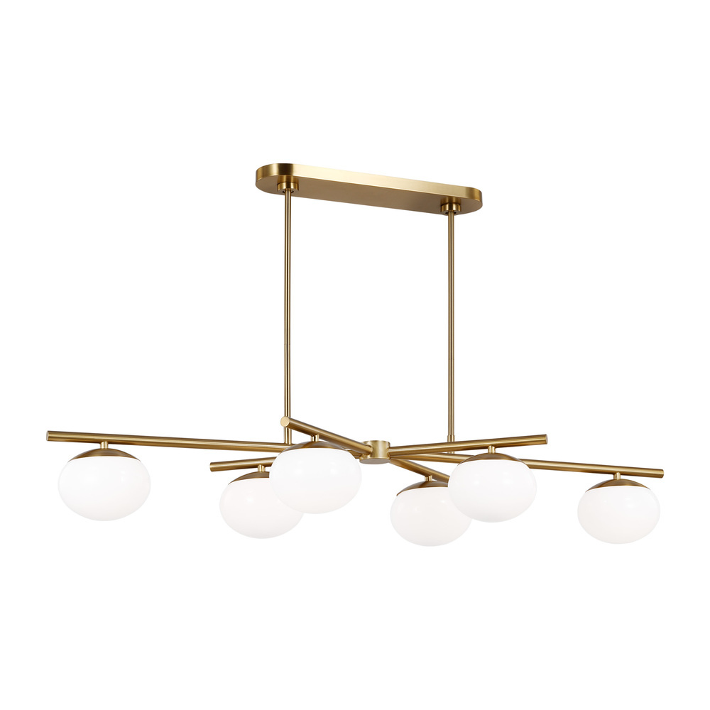 The Lune mid-century modern collection from Ellen DeGeneres is offered in two finishes including Aged Iron and Burnished Brass. The symmetrical abstract of the silhouette is deceptively simple with your attention being drawn to the milk glass shade featuring no visible hardware. We are expanding this floor lamp to a full series and adding an Aged Iron finish option. Lune has a simple yet sophisticated design. The slender metal frame features Aged Iron or Burnished Brass arms that are complete with a white glass globe at each end. The brass accents handsomely complement the black or brass frame to create a mid-century modern vibe.