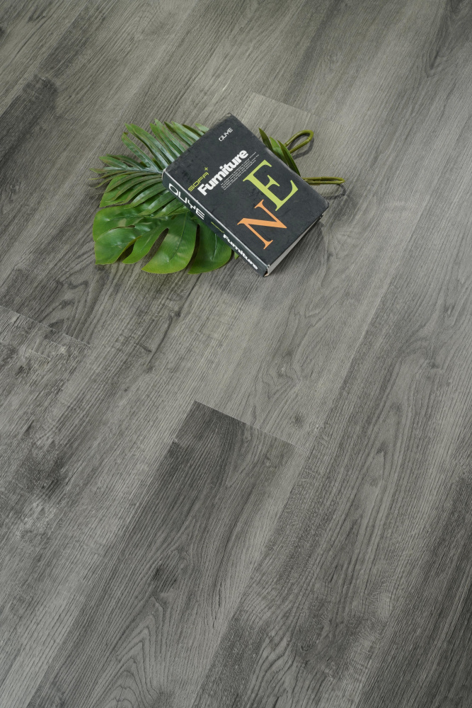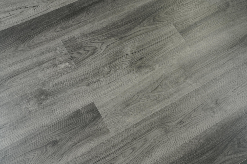 Elevate your space with our premium SPC flooring that combines a sophisticated gray wood grain pattern with advanced 12 mil wear layer technology, 70% PVC construction.