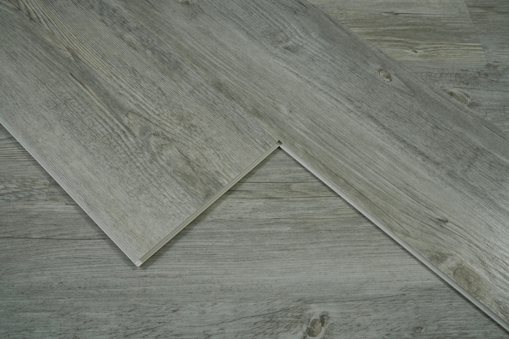 Elevate your space with our premium SPC flooring that combines a sophisticated gray wood grain pattern with advanced 20 mil wear layer technology, 70% PVC construction.
