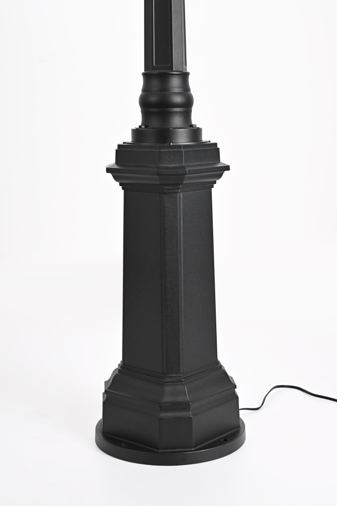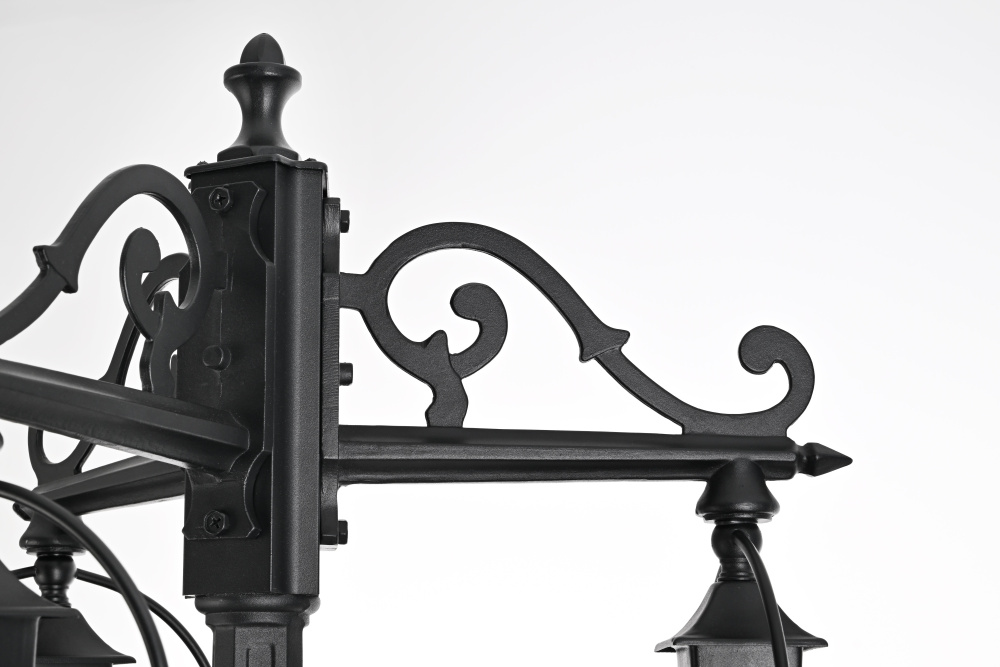 The ornate scrollwork and tapered post give this fixture a timeless appeal reminiscent of classic streetlights.