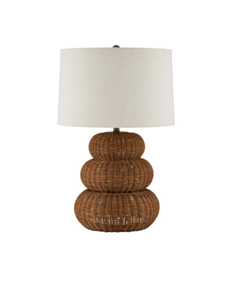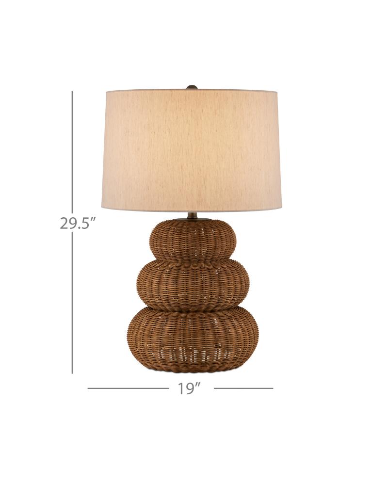 Nothing says texture in a space better than woven natural materials. The Mabrouka Table Lamp brings it in spades. Made of rattan, the triple-gourd shape of the lamp's body and the dark brown finish that adds warmth to the natural material enliven the personality of the brown lamp. The hardware and finial in an antique brass finish read as perfectly in-sync with the color of the wicker weave.