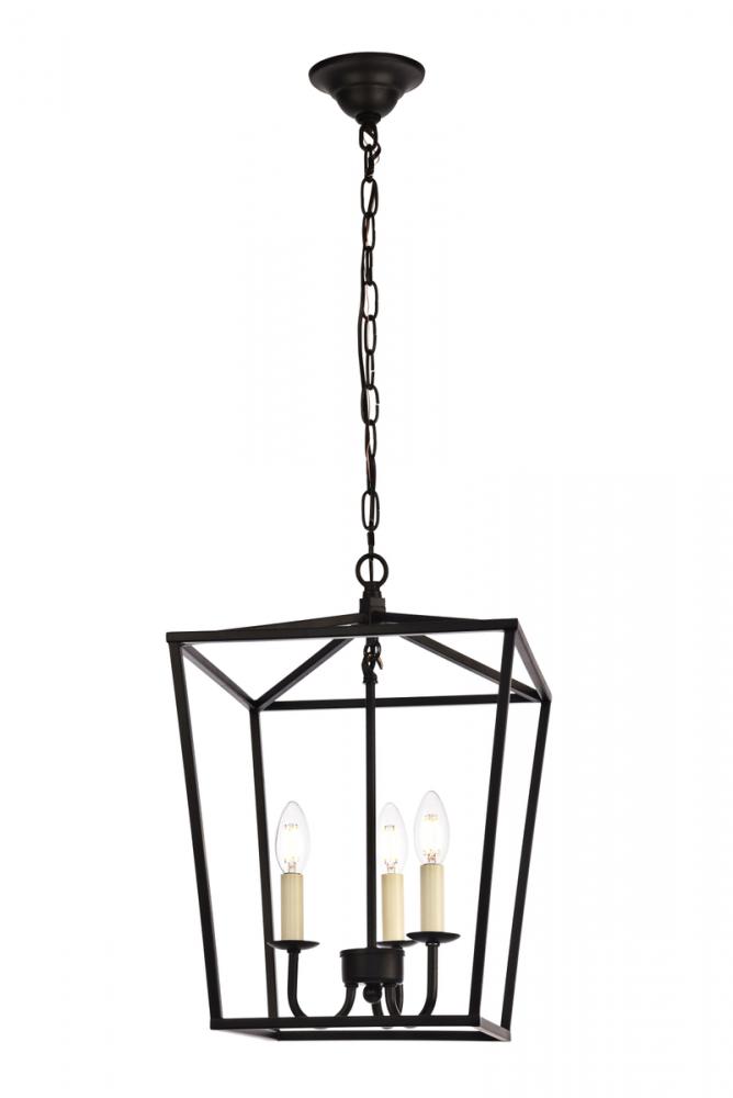 The Maddox collection brings the warmth and charm of the classic “coach light” into your dining room, foyer, or family room. This universally familiar shape features four tapered, inverted trapezoids topped by a clear pyramidal canopy. Three medium-base E26 antique-style filament bulb (Not included) casts light in all directions. The sleek Metal frames and matching hanging chains are available in Black. These cozy pendant lamps complement any home’s décor.