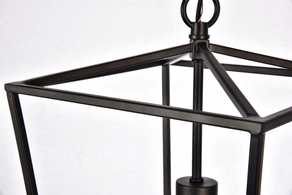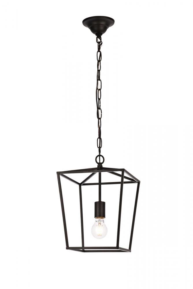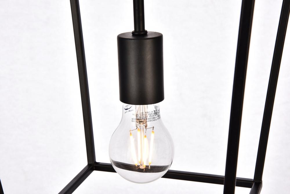 The Maddox collection brings the warmth and charm of the classic “coach light” into your dining room, foyer, or family room. This universally familiar shape features four tapered, inverted trapezoids topped by a clear pyramidal canopy. One medium-base E26 antique-style filament bulb (Not included) casts light in all directions. The sleek Metal frames and matching hanging chains are available in Black. These cozy pendant lamps complement any home’s décor.