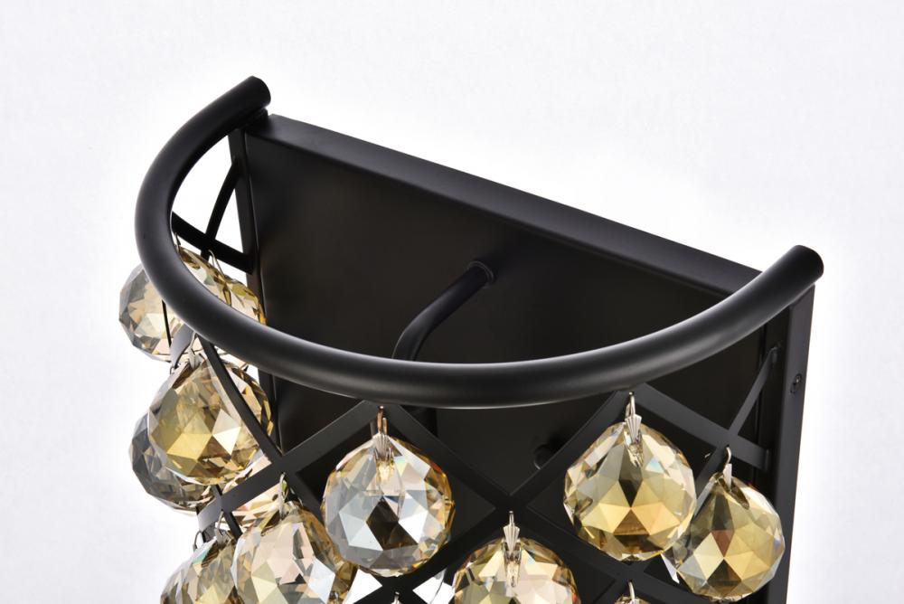 Madison 1 light Matte Black Wall Sconce Golden Teak (Smoky) Royal Cut Crystal
