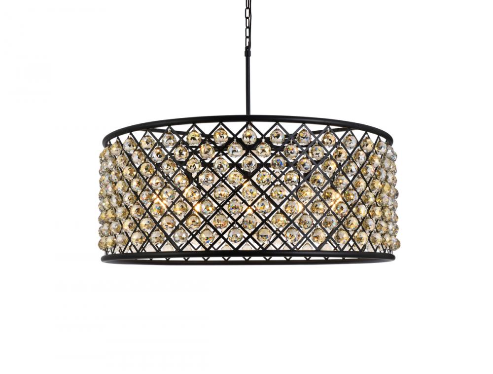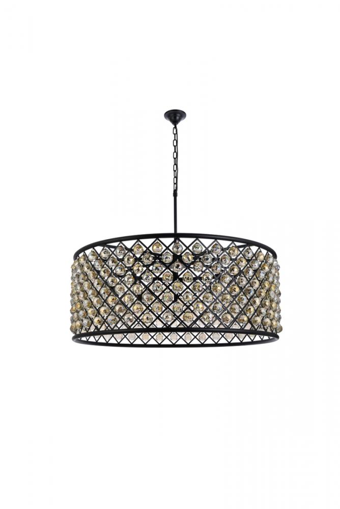 Madison 10 light Matte Black Chandelier Golden Teak (Smoky) Royal Cut Crystal