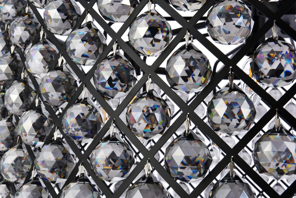 Modern simplicity meets organic beauty in the breathtakingly unique Madison collection. Hand-polished, multifaceted clear, golden-teak, or Silver-shade crystal spheres shimmer like dewdrops in a circular forged-iron grid with a golden-iron, Matte Black, or polished-nickel finish. These airy pendant lamps will brighten up a kitchen, dining room, foyer, or stairwell in an explosion of reflected light.