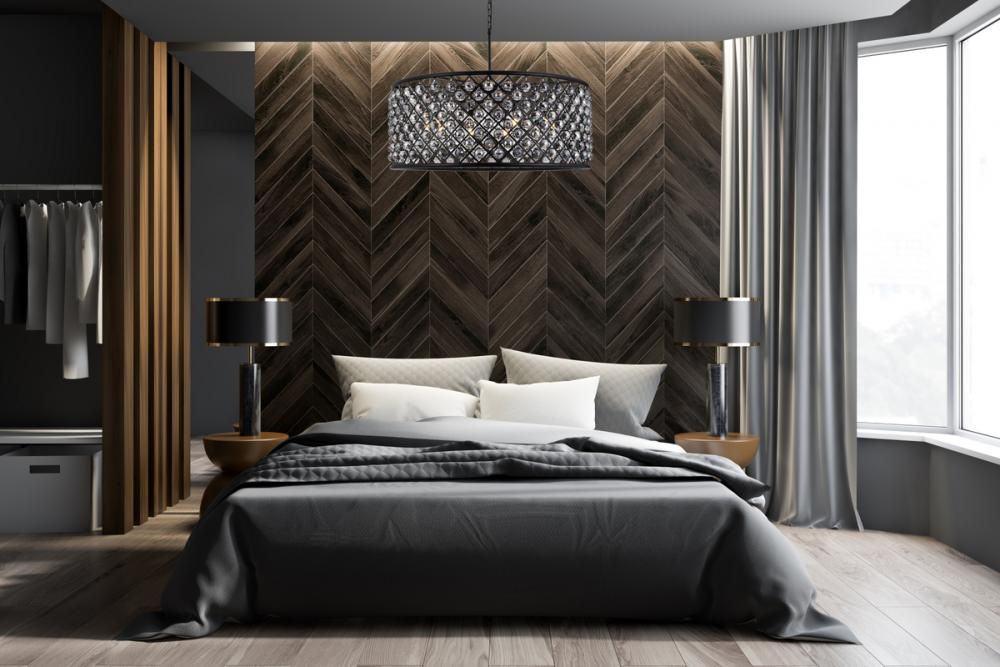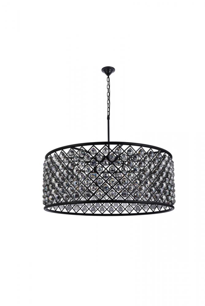 Madison 10 light Matte Black Chandelier Silver Shade (Grey) Royal Cut Crystal