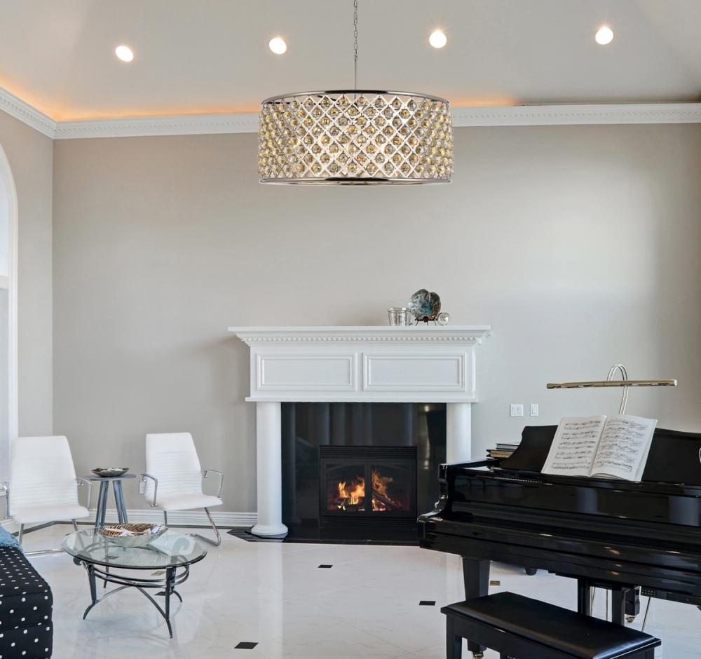 Lamp features a diameter of 43.5 inches, a height of 18.25 inches, a minimum hanging length of 24 inches, a maximum hanging length of 78 inches, and requires 10 candelabra bulbs