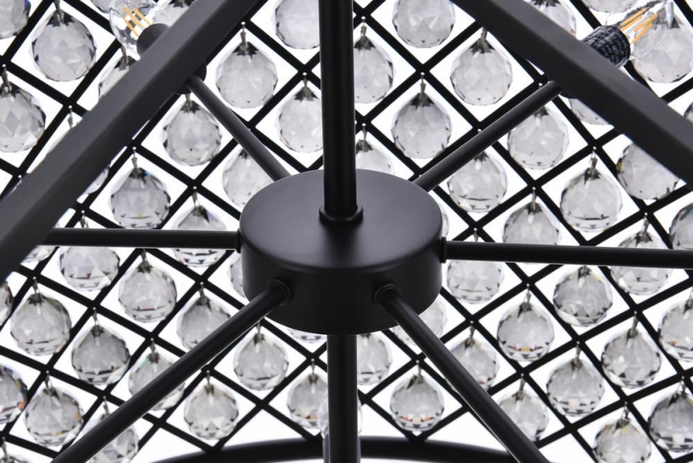 Modern simplicity meets organic beauty in the breathtakingly unique Madison collection. Hand-polished, multifaceted clear, golden-teak, or Silver-shade crystal spheres shimmer like dewdrops in a circular forged-iron grid with a golden-iron, Matte Black, or polished-nickel finish. These airy pendant lamps will brighten up a kitchen, dining room, foyer, or stairwell in an explosion of reflected light.