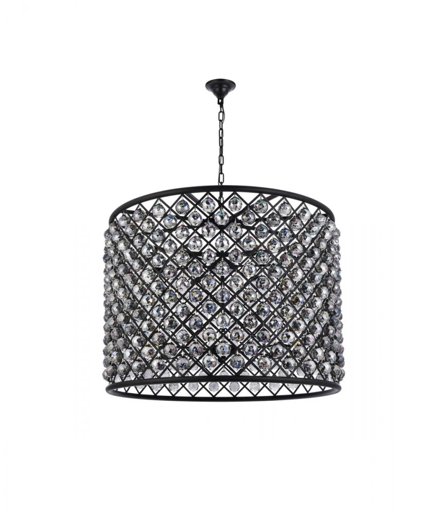 Madison 12 light Matte Black Chandelier Silver Shade (Grey) Royal Cut Crystal