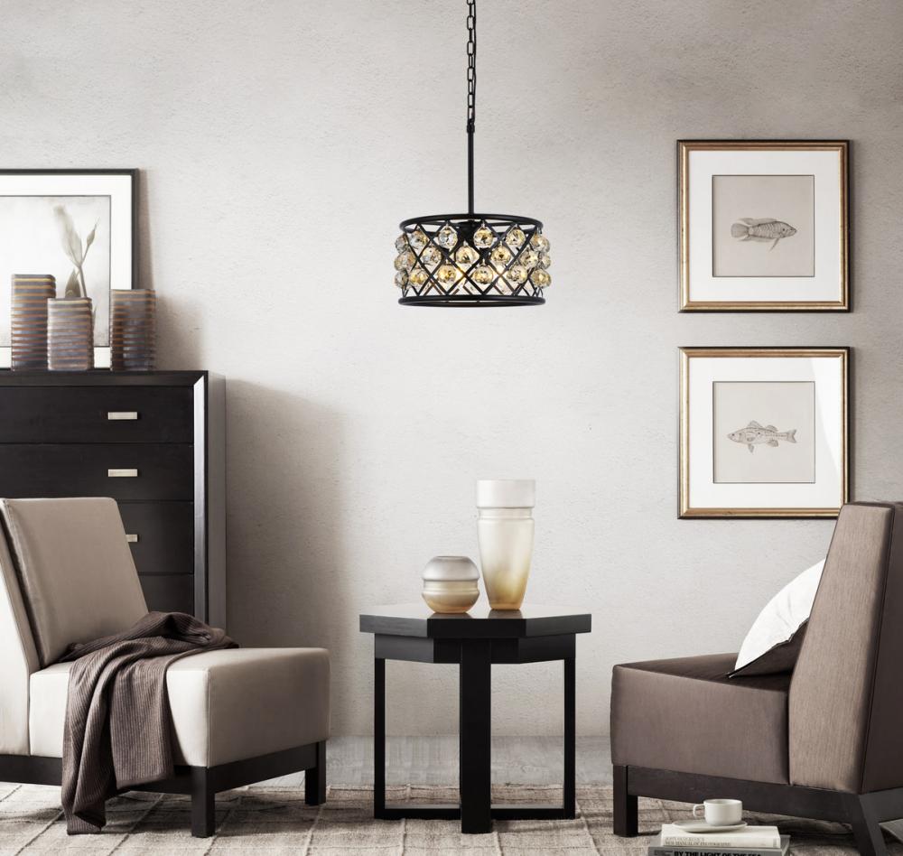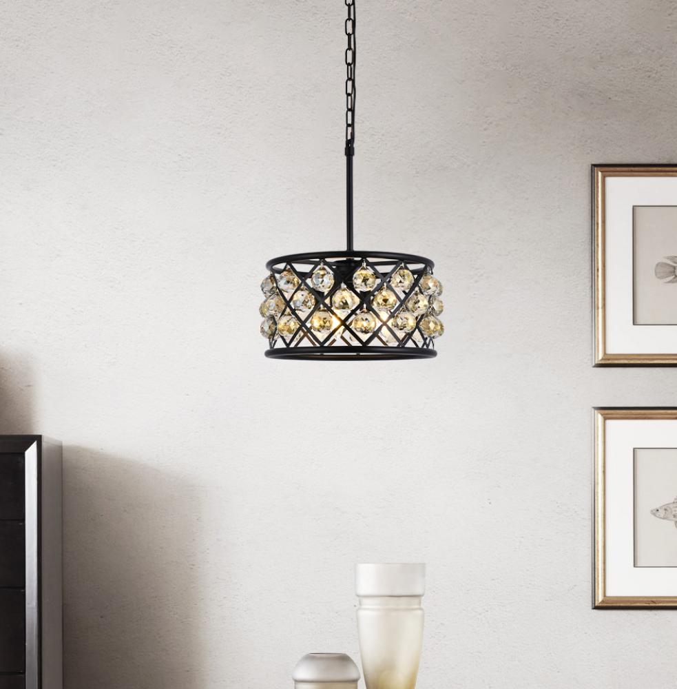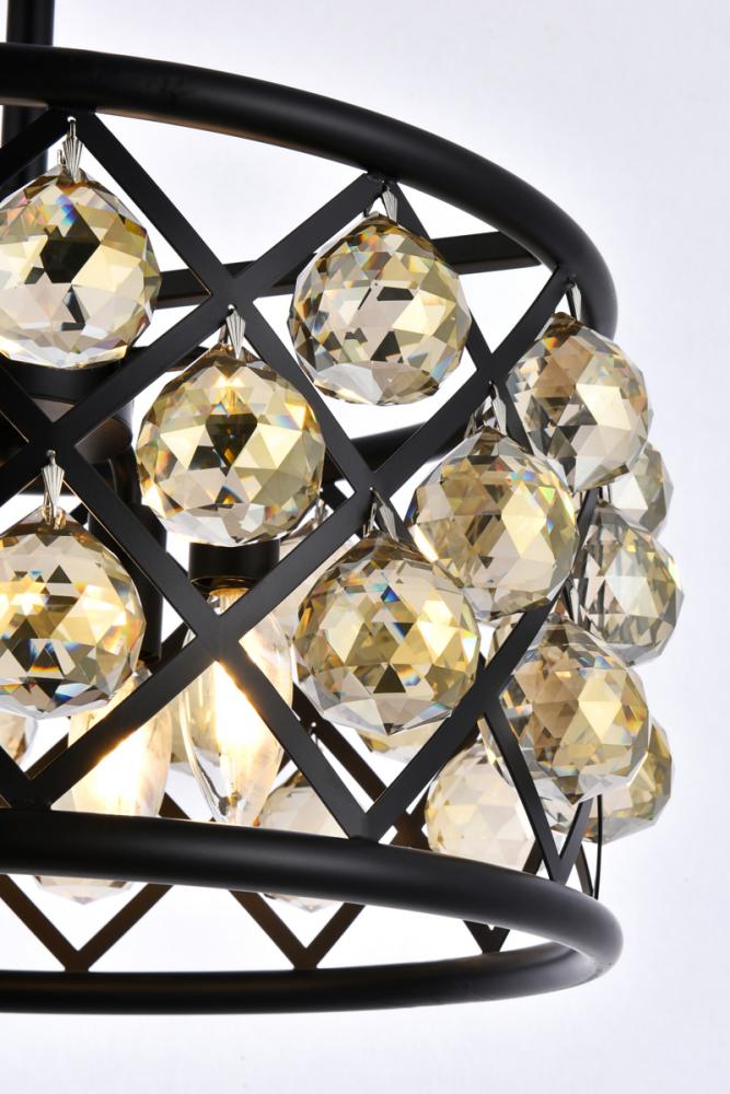 Madison 4 light Matte Black Pendant Golden Teak (Smoky) Royal Cut Crystal