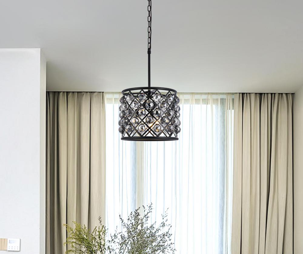 Modern simplicity meets organic beauty in the breathtakingly unique Madison collection. Hand-polished, multifaceted clear, golden-teak, or Silver-shade crystal spheres shimmer like dewdrops in a circular forged-iron grid with a golden-iron, Matte Black, or polished-nickel finish. These airy pendant lamps will brighten up a kitchen, dining room, foyer, or stairwell in an explosion of reflected light.