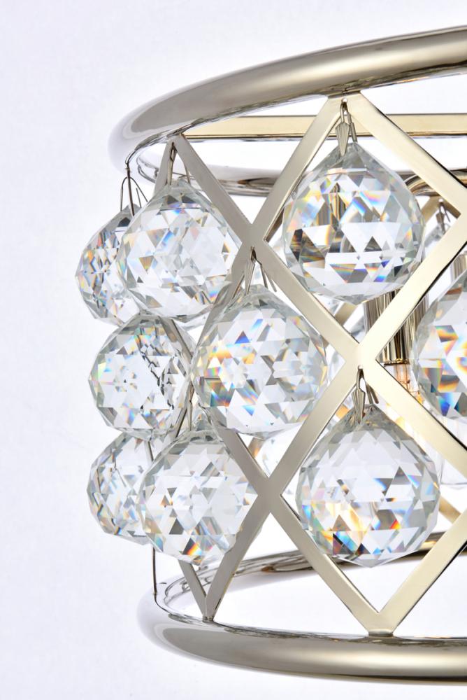 Modern simplicity meets organic beauty in the breathtakingly unique Madison collection. Hand-polished, multifaceted clear, golden-teak, or Silver-shade crystal spheres shimmer like dewdrops in a circular forged-iron grid with a golden-iron, mocha-brown, or polished-nickel finish. These airy pendant lamps will brighten up a kitchen, dining room, foyer, or stairwell in an explosion of reflected light.