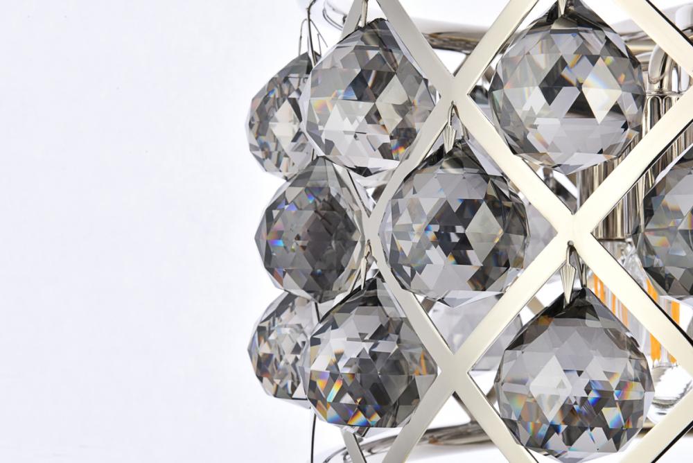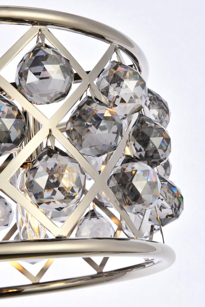 Modern simplicity meets organic beauty in the breathtakingly unique Madison collection. Hand-polished, multifaceted clear, golden-teak, or Silver-shade crystal spheres shimmer like dewdrops in a circular forged-iron grid with a golden-iron, mocha-brown, or polished-nickel finish. These airy pendant lamps will brighten up a kitchen, dining room, foyer, or stairwell in an explosion of reflected light.