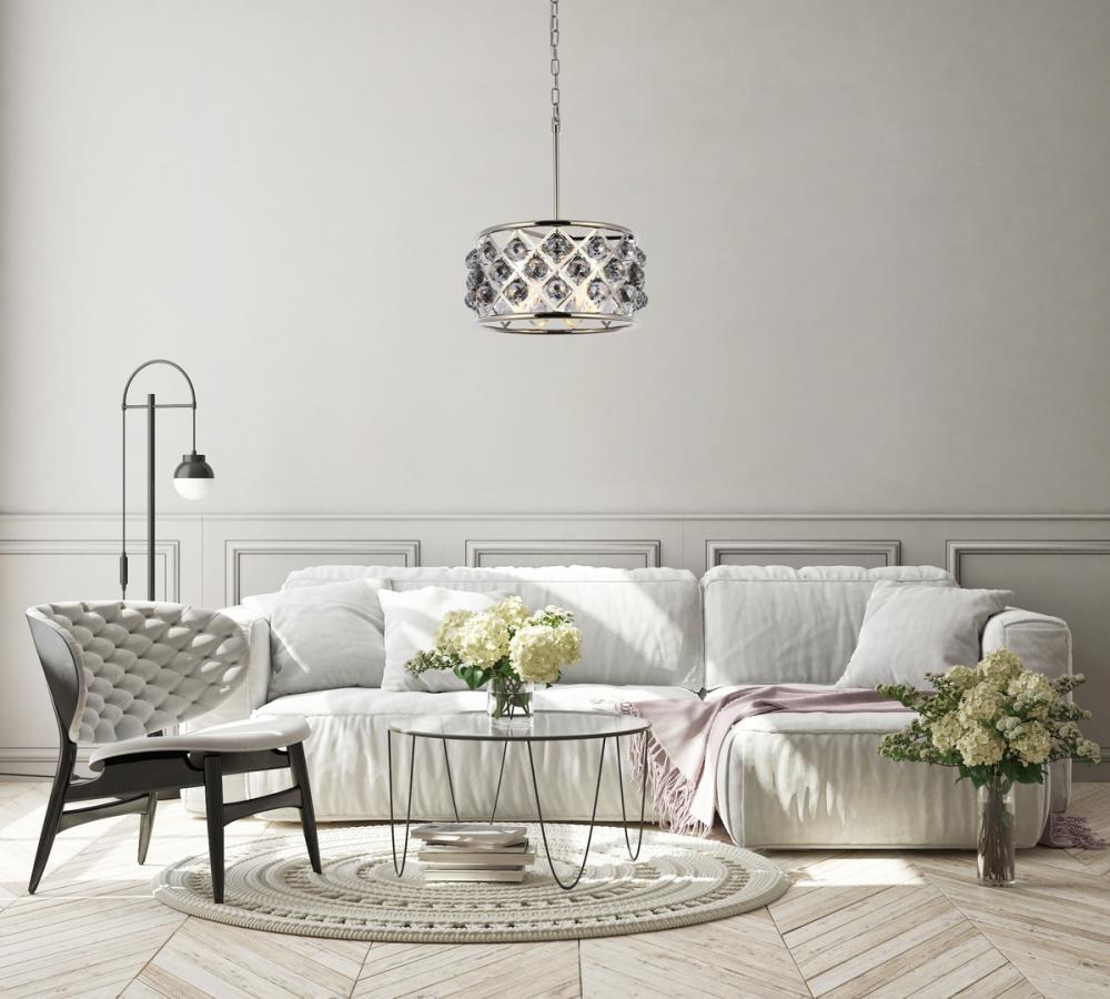 Madison 4 light polished Nickel Pendant Silver Shade (Grey) Royal Cut Crystal