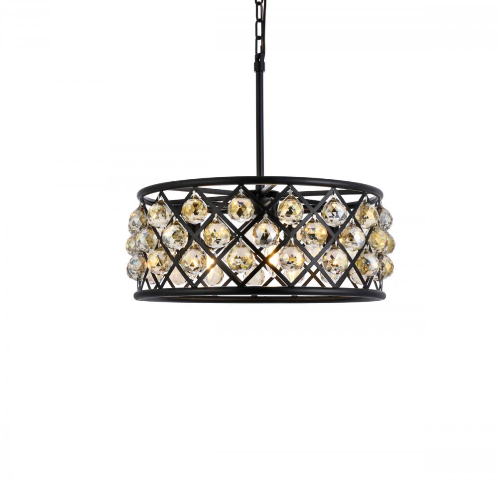 Madison 5 light Matte Black Chandelier Golden Teak (Smoky) Royal Cut Crystal