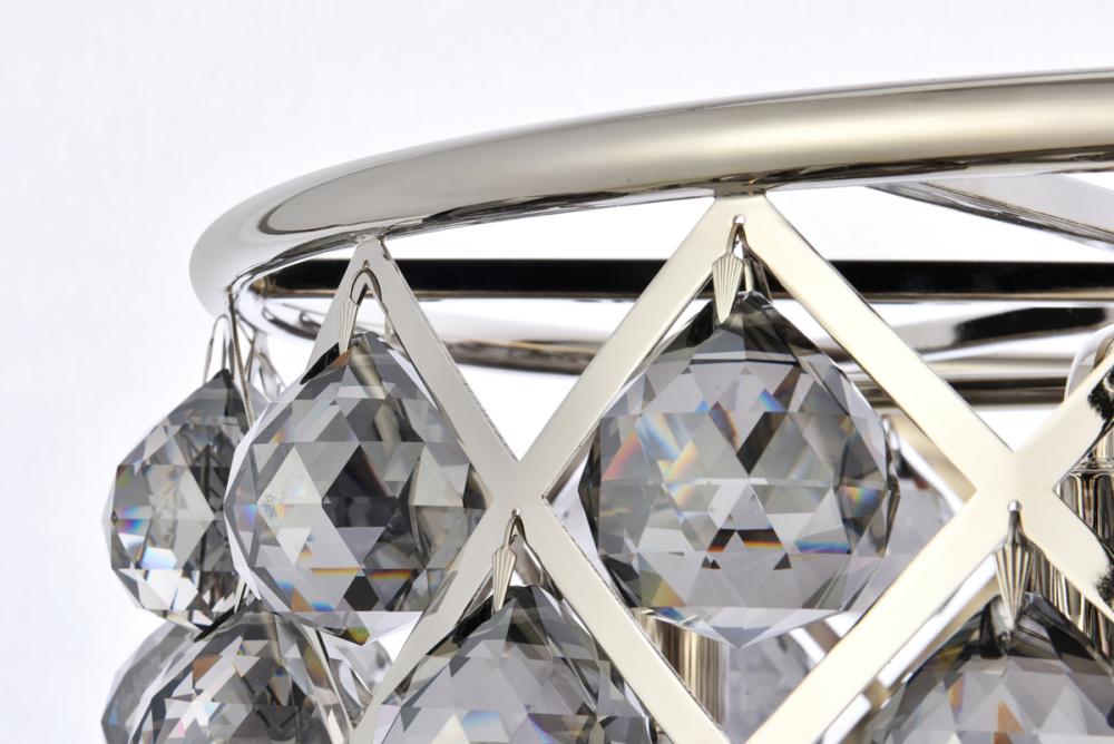 Modern simplicity meets organic beauty in the breathtakingly unique Madison collection. Hand-polished, multifaceted clear, golden-teak, or Silver-shade crystal spheres shimmer like dewdrops in a circular forged-iron grid with a golden-iron, mocha-brown, or polished-nickel finish. These airy pendant lamps will brighten up a kitchen, dining room, foyer, or stairwell in an explosion of reflected light.