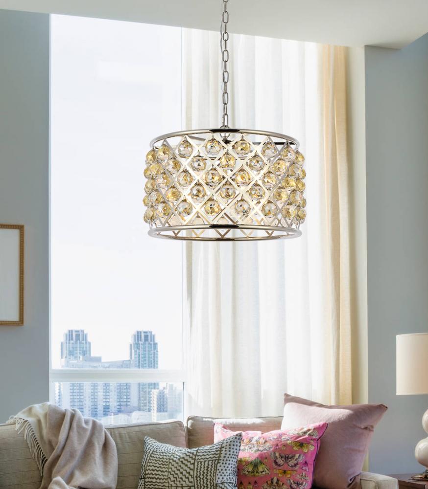 Madison 6 light polished nickel Pendant Golden Teak (Smoky) Royal Cut Crystal