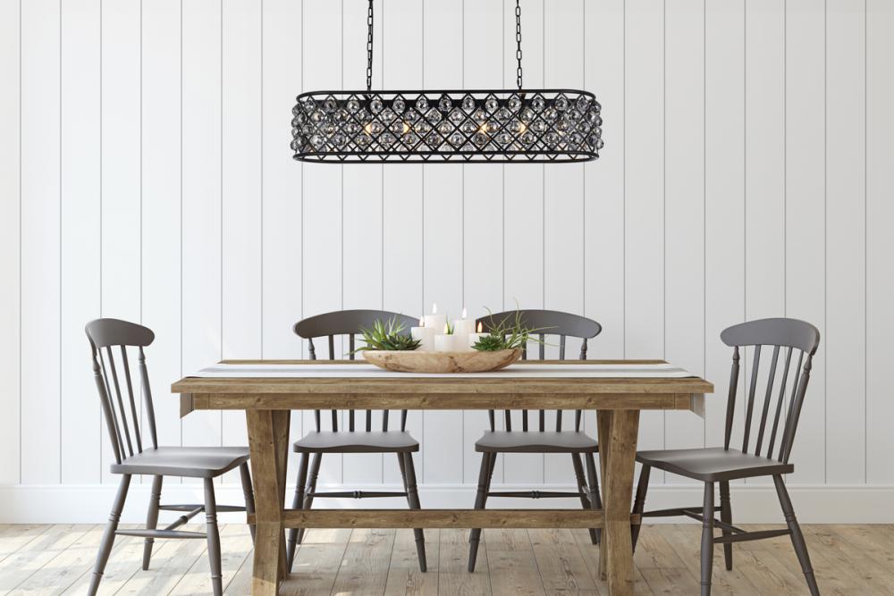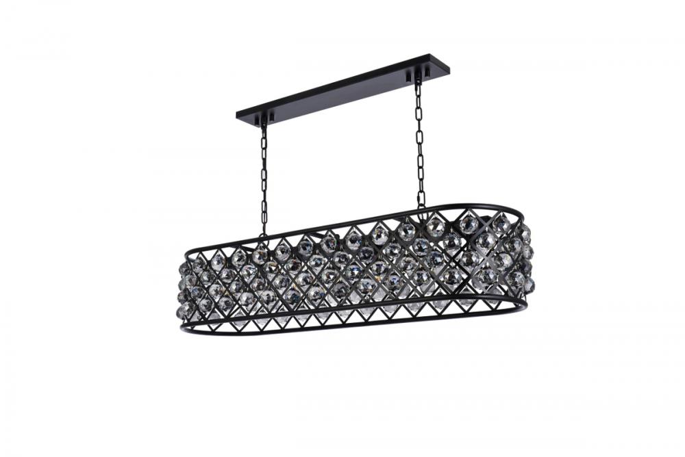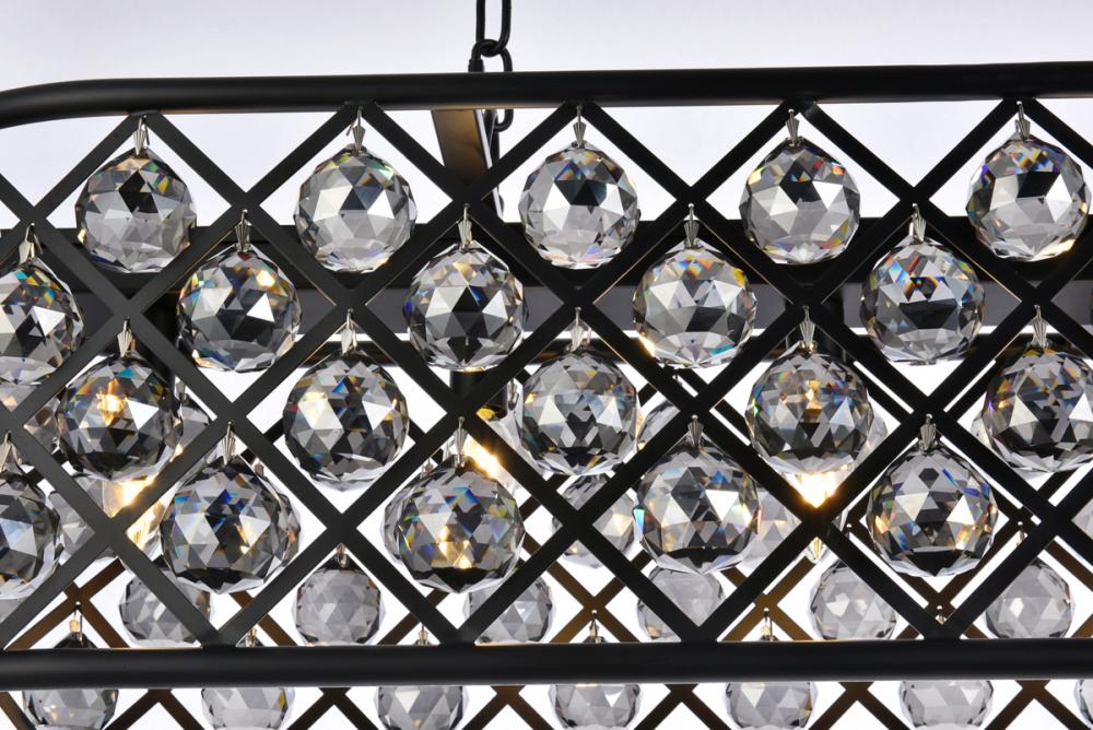 Modern simplicity meets organic beauty in the breathtakingly unique Madison collection. Hand-polished, multifaceted clear, golden-teak, or Silver-shade crystal spheres shimmer like dewdrops in an oblong forged-iron grid with a golden-iron, Matte Black, or polished-nickel finish. These airy chandeliers will brighten up a kitchen, dining room, foyer, or stairwell in an explosion of reflected light.