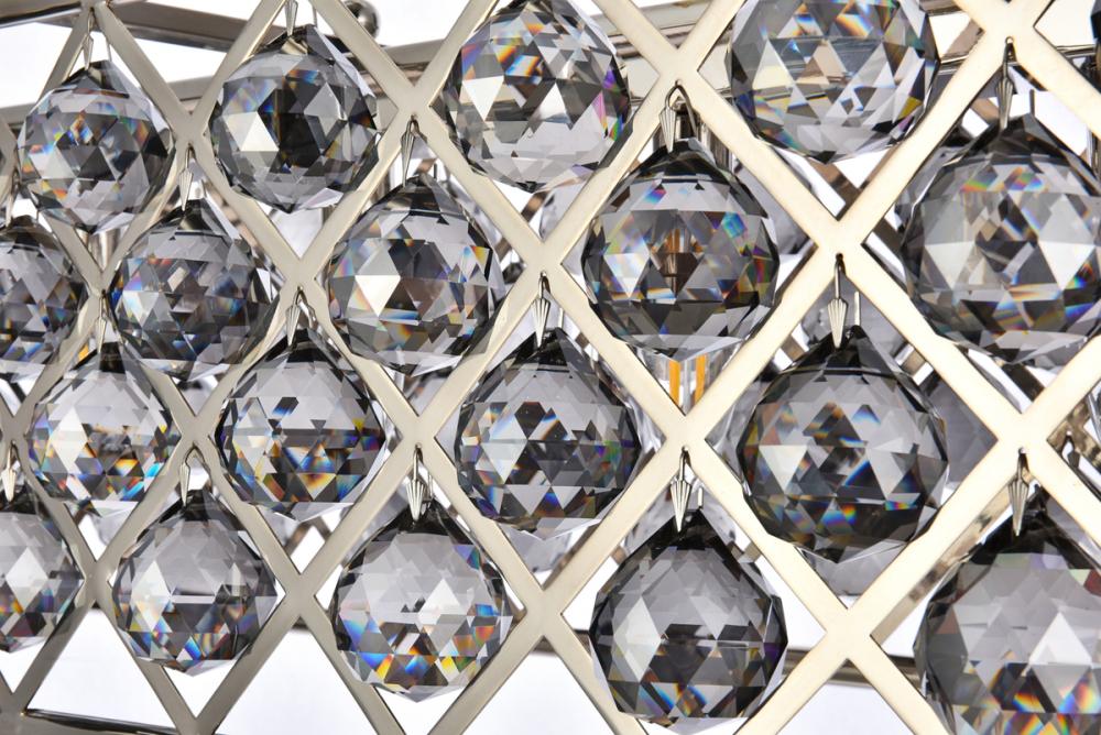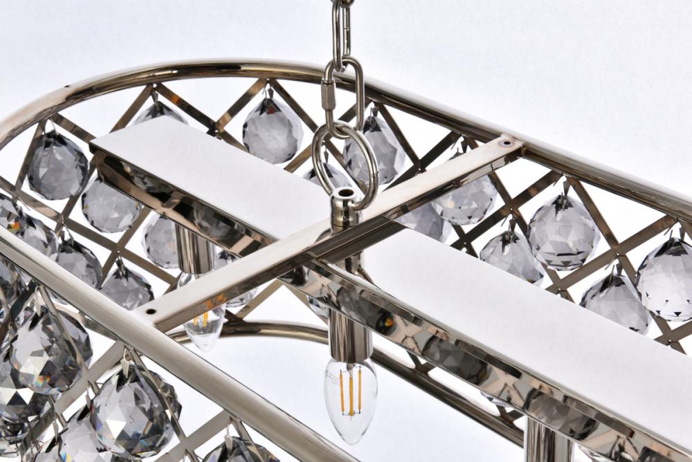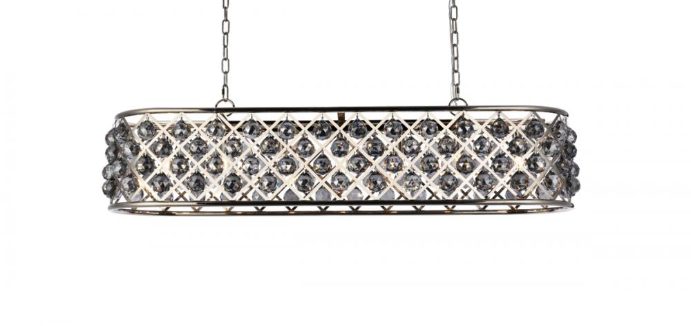 Modern simplicity meets organic beauty in the breathtakingly unique Madison collection. Hand-polished, multifaceted clear, golden-teak, or Silver-shade crystal spheres shimmer like dewdrops in an oblong forged-iron grid with a golden-iron, mocha-brown, or polished-nickel finish. These airy chandeliers will brighten up a kitchen, dining room, foyer, or stairwell in an explosion of reflected light.