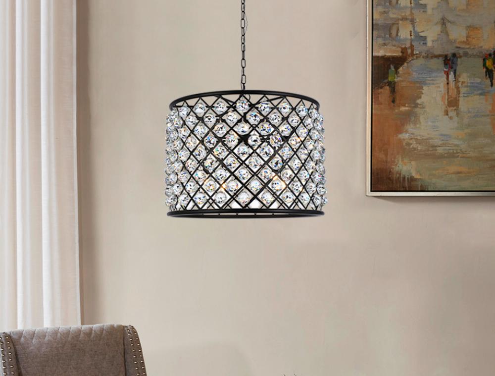 Modern simplicity meets organic beauty in the breathtakingly unique Madison collection. Hand-polished, multifaceted clear, golden-teak, or Silver-shade crystal spheres shimmer like dewdrops in a circular forged-iron grid with a golden-iron, Matte Black, or polished-nickel finish. These airy pendant lamps will brighten up a kitchen, dining room, foyer, or stairwell in an explosion of reflected light.