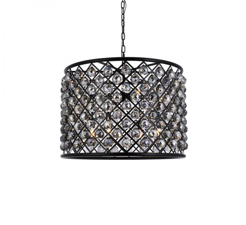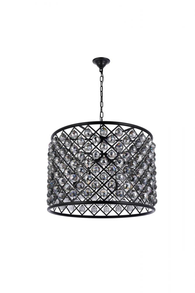 Madison 8 light Matte Black Chandelier Silver Shade (Grey) Royal Cut Crystal