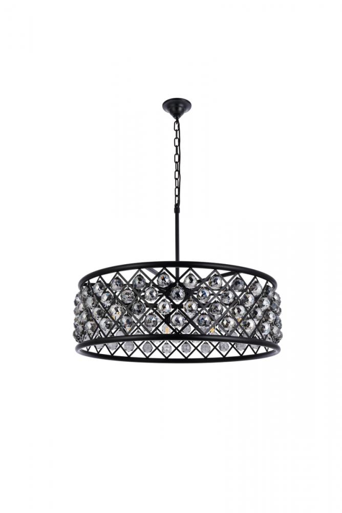 Madison 8 light Matte Black Chandelier Silver Shade (Grey) Royal Cut Crystal