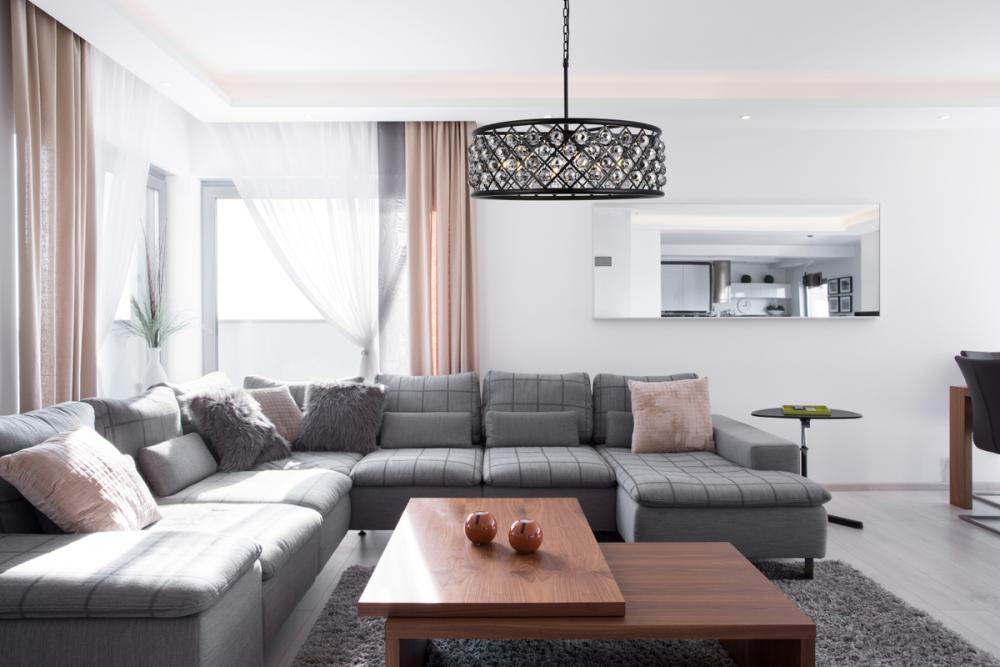 Lamp features a diameter of 32 inches, a height of 10.5 inches, a minimum hanging length of 16 inches, a maximum hanging length of 70 inches, and requires 8 candelabra bulbs