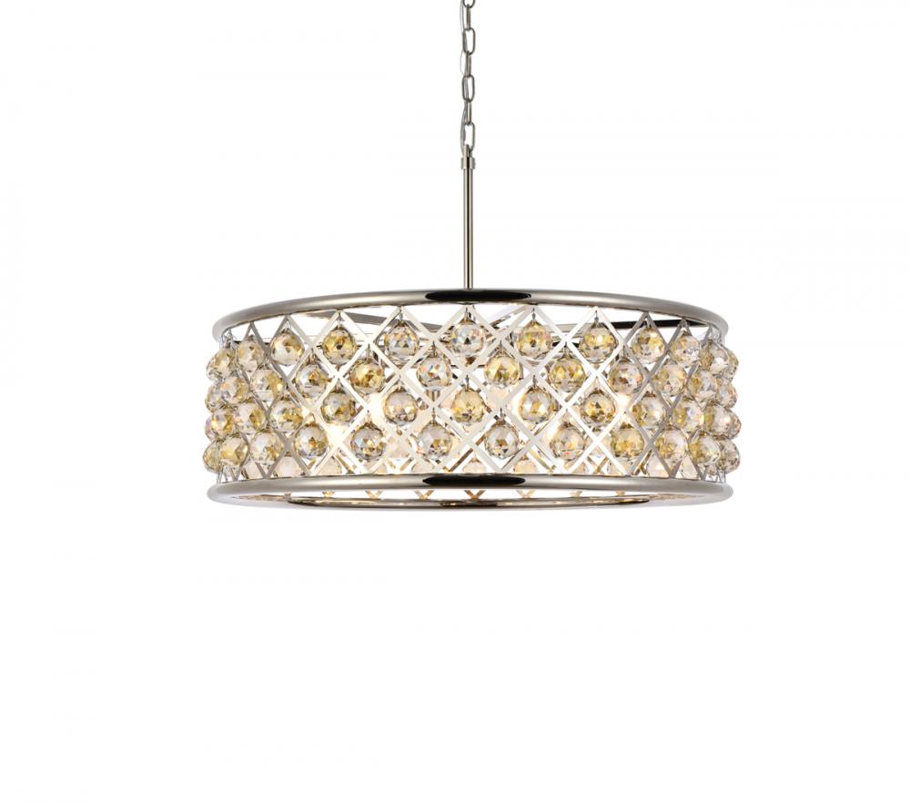 Madison 8 light polished Nickel Chandelier Golden Teak (Smoky) Royal Cut Crystal