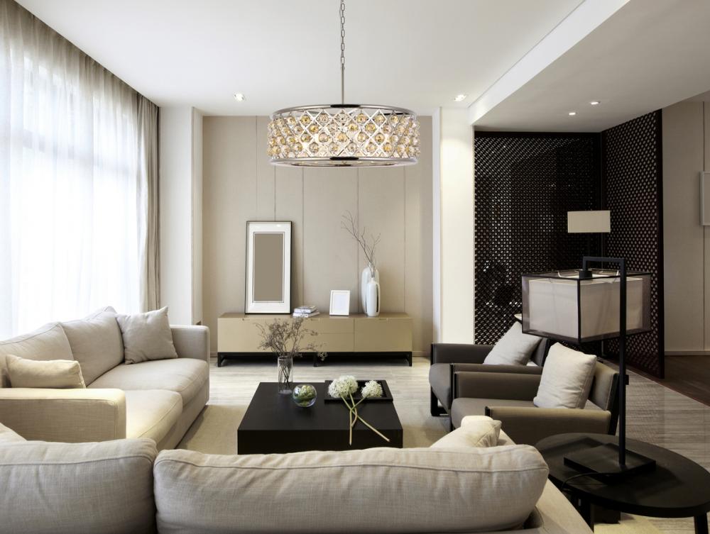 Lamp features a diameter of 32 inches, a height of 10.5 inches, a minimum hanging length of 16 inches, a maximum hanging length of 70 inches, and requires 8 candelabra bulbs