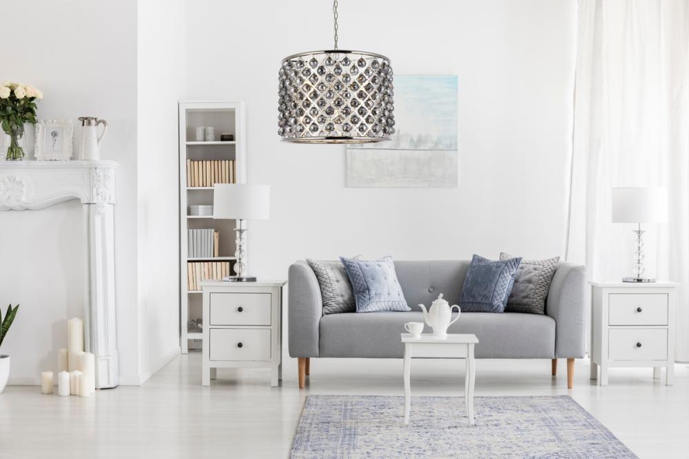 Madison 8 light polished nickel Chandelier Silver Shade (Grey) Royal Cut Crystal