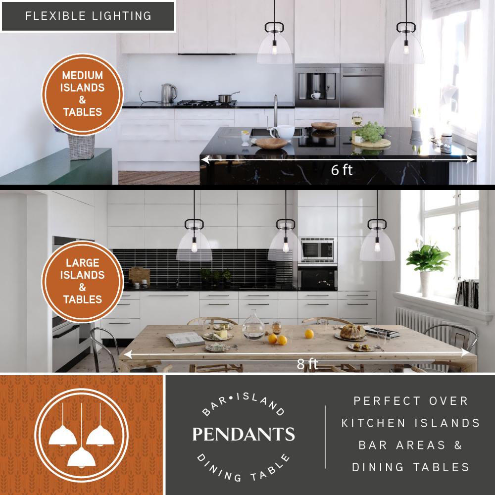 Add a touch of modern industrial style to your kitchen island or dining nook with the Madrona pendant. Its clear glass bell-shaped shade and industrial ring top with knurled metal accents create a unique and eye-catching statement. The black finish adds warmth and sophistication, elevating your home's style without breaking the bank.