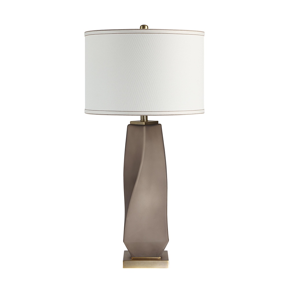 For a moody vibe in any space, discover the Mallorca table lamp. Featuring a glass body with a stunning smokey grey finish and antique brass-plated accents, this light lends a traditional aesthetic anywhere it sits. For added interest, its off-white linen drum shade has been embellished with white and natural trim that makes this lamp even more beautiful when turned on.