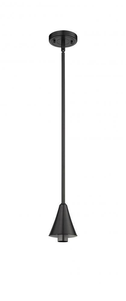 The Malone Pendant is a modern design for the traditional teardrop form. The large fixture presents a beautiful silhouette with a cone inspired metal base opening up to reveal a single bulb encased in classic drop shaped heavy glass.