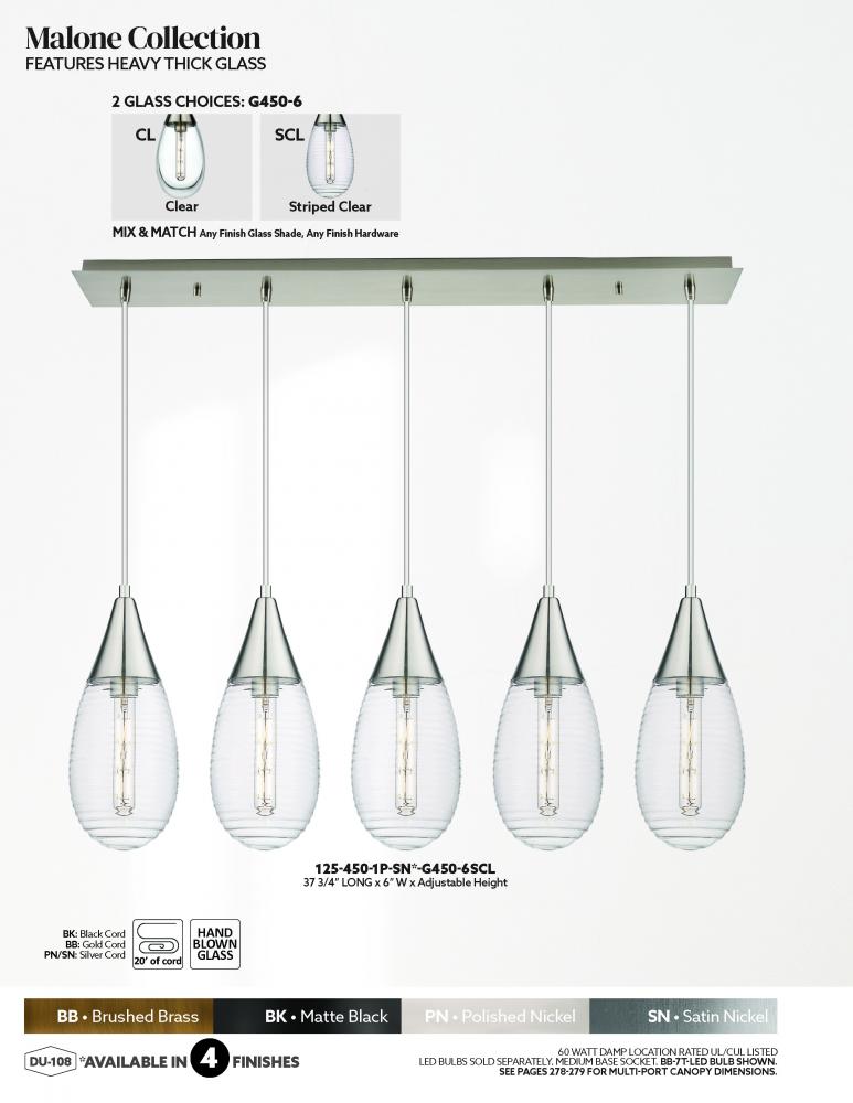 The Malone Pendant is a modern design for the traditional teardrop form. The large fixture presents a beautiful silhouette with a cone inspired metal base opening up to reveal a single bulb encased in classic drop shaped heavy glass.