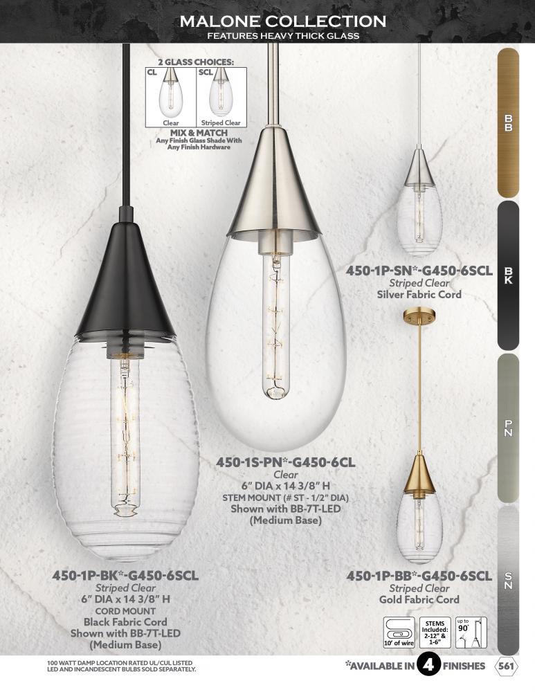 The Malone Pendant is a modern design for the traditional teardrop form. The large fixture presents a beautiful silhouette with a cone inspired metal base opening up to reveal a single bulb encased in classic drop shaped heavy glass.