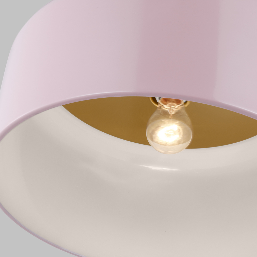 The Malone collection features a youthful color palette and simple detail that really refines the design. The inner part of the shade is highlighted by a beautifully spun-metal disk and socket cover in our warm satin brass finish to create visual interest. Add minimalist chic to your kitchen living room, bedroom or foyer or with this flush-mount fixture, which is as durable as it is beautiful