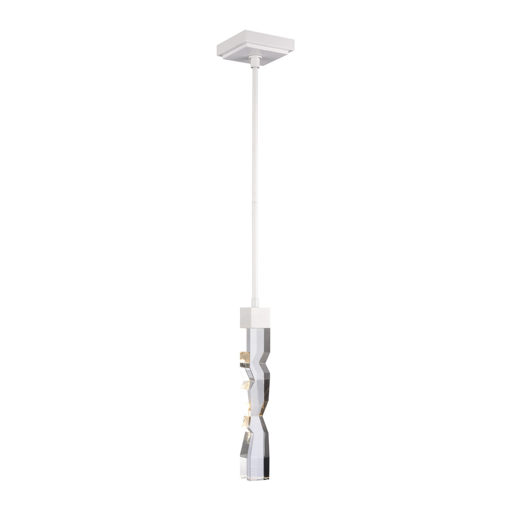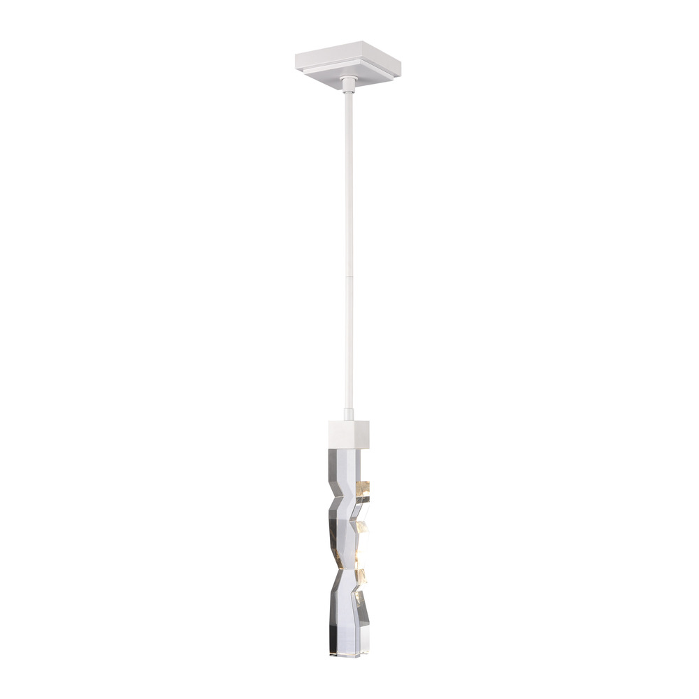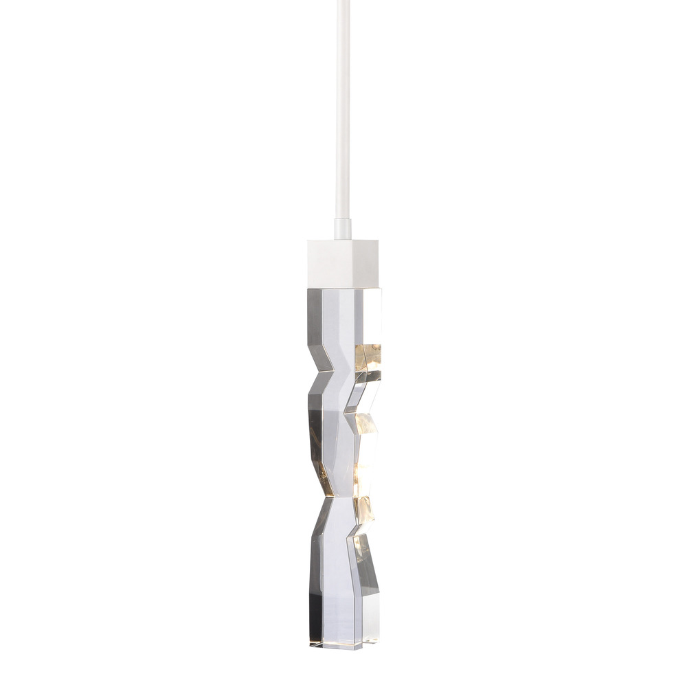 LED hand formed and polished heavy gauge 2" x 2" crystal Mini-Pendant, with deep edges and slants with each side unique. Refined iron metal details with our chic matte white finish. Integrated Replaceable LED with 3CCT 3000K, 3500K and 4000K.