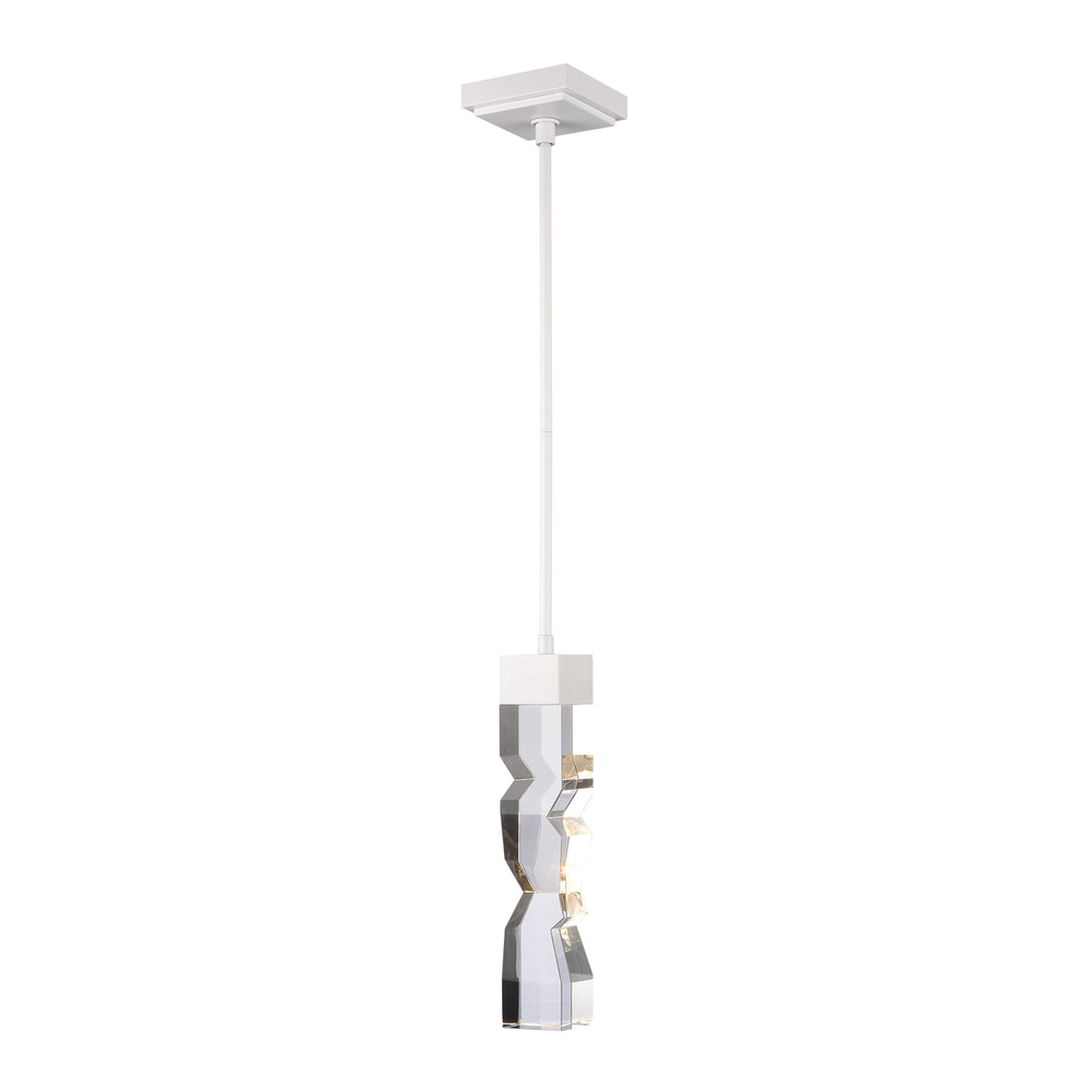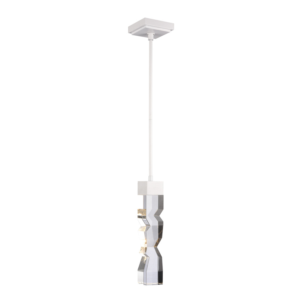 LED hand formed and polished heavy gauge 3" x 3" crystal Mini-Pendant, with deep edges and slants with each side unique. Refined iron metal details with our chic matte white finish. Integrated Replaceable LED with 3CCT 3000K, 3500K and 4000K.
