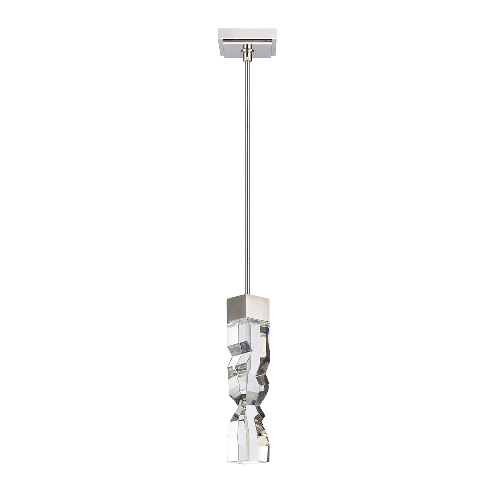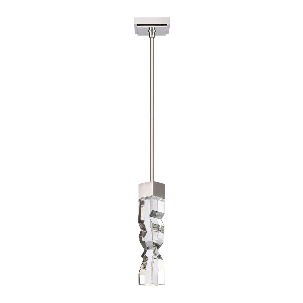LED hand formed and polished heavy gauge 3" x 3" crystal Mini-Pendant, with deep edges and slants with each side unique. Refined iron metal details with our luxurious polished nickel finish. Integrated Replaceable LED with 3CCT 3000K, 3500K and 4000K.