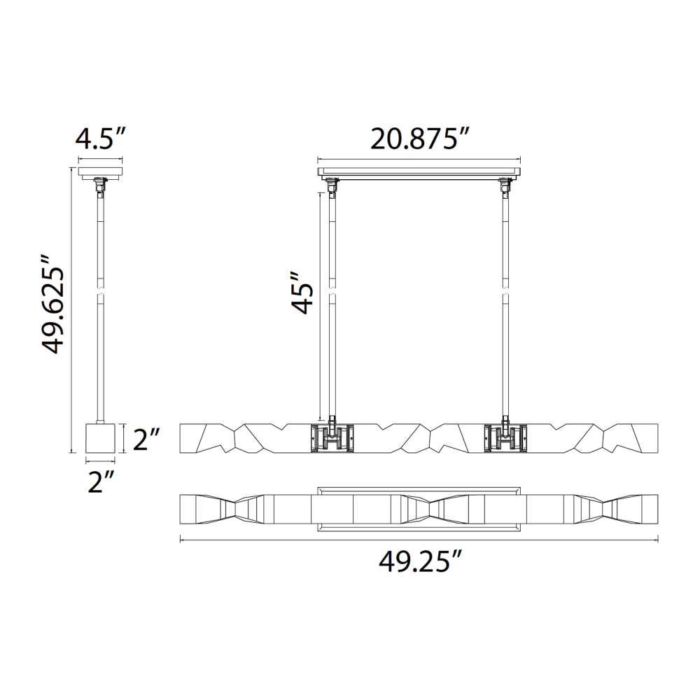 LED 49" 4-light hand formed and polished heavy gauge 2" x 2" linear crystal pendant, with deep edges and slants with each side unique. Refined iron metal details with our chic matte white finish. Adjustable arms for unique designs and integrated Replaceable LED with 3CCT 3000K, 3500K and 4000K.