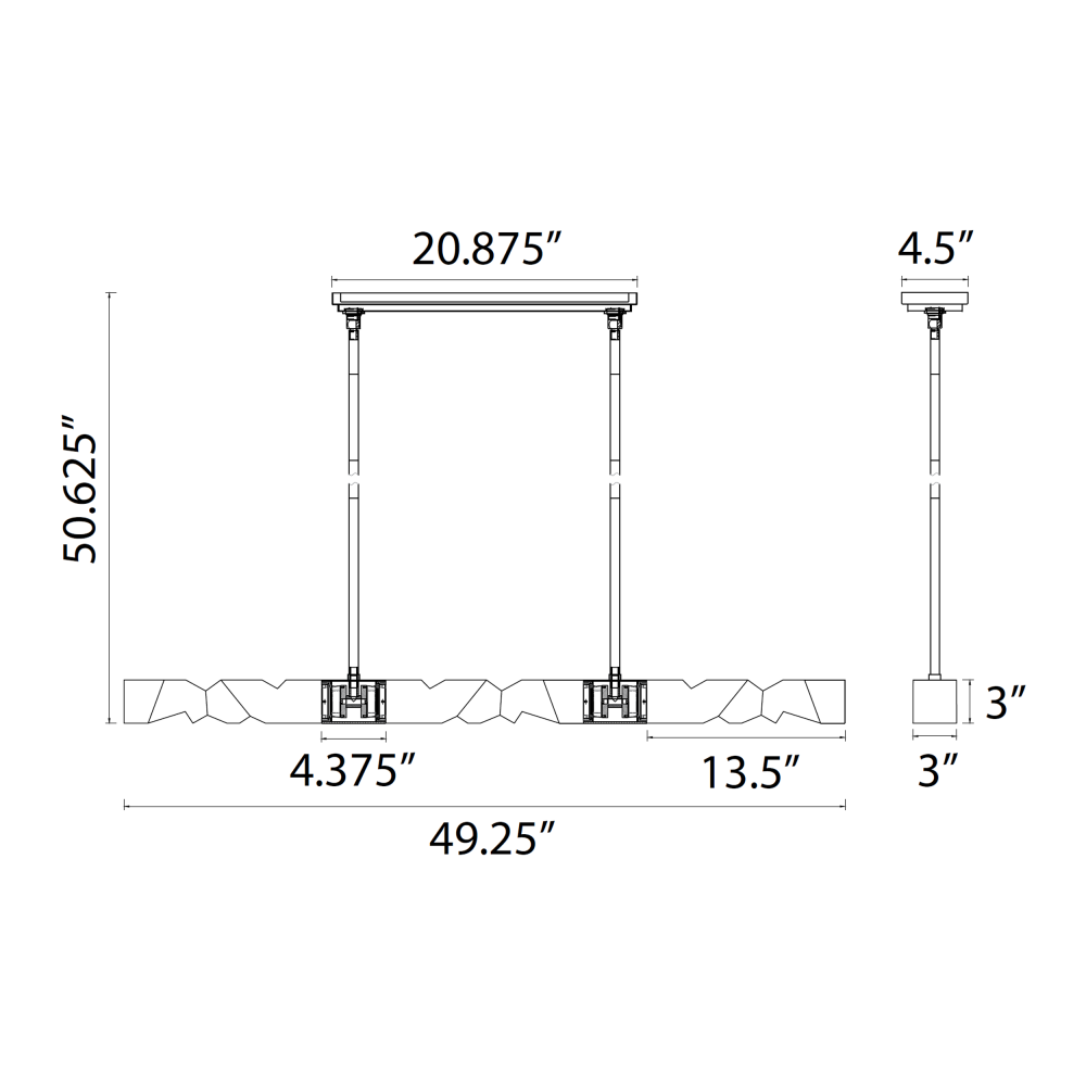 LED 49" 4-light hand formed and polished heavy gauge 3" x 3" linear crystal pendant, with deep edges and slants with each side unique. Refined iron metal details with our chic matte white finish. Adjustable arms for unique designs and integrated Replaceable LED with 3CCT 3000K, 3500K and 4000K.